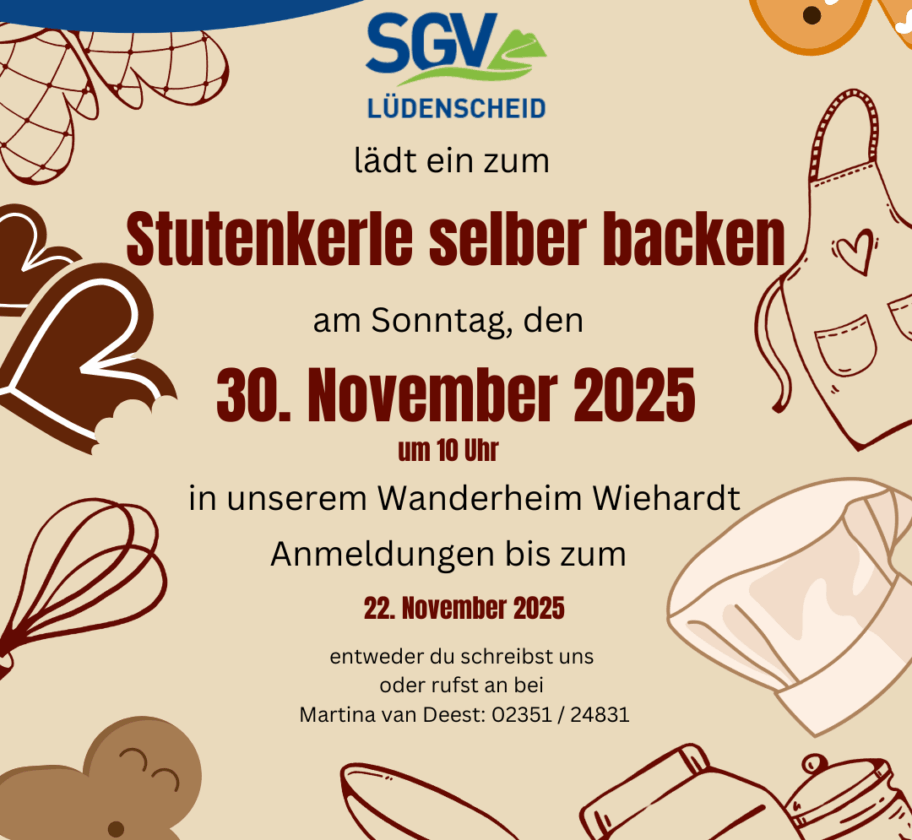 Am Sonntag, den 30.November 2025 ist es wieder soweit. In unserem Wanderheim Wiehardt können kleine Backfreunde wieder gemeinsam mit unserem Bäckerteam ihre Stutenkerle selber formen!